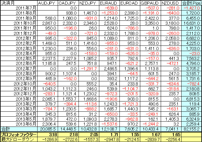 当ブログ推奨ストラテジーThirdBrainFXですが、採用通貨ペアの6月までの実績を更新しました。2年間で+82155Pips